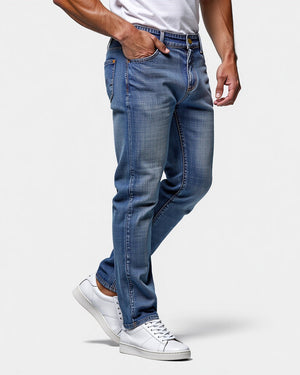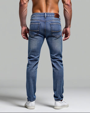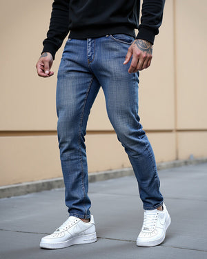 Slim Fit Jeans combine rugged style with modern functionality, offering a tailored slim fit that enhances your physique. The washed texture adds character, while the stretch fabric ensures unrestricted movement and lasting comfort. Designed with five practical pockets, these jeans provide convenience without compromising on style. The breathable and durable construction makes them a reliable choice for any occasion, whether dressing up for a night out or keeping it casual during the day.